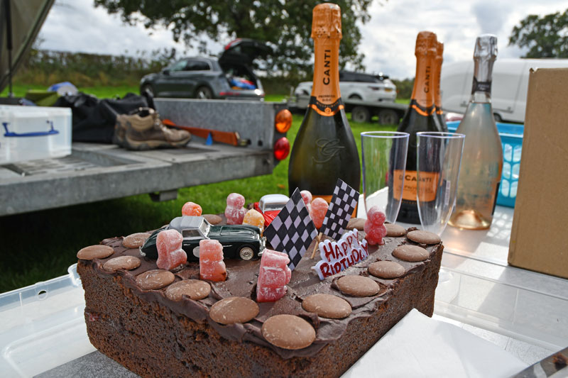 We celebrated 3 birthdays in the usual cake and bubbly manner, Trish, Keith and Garrow. A tasty end to some superb hill climbing sport and everyone agreed that we all had a great Healeysport weekend - now on to Harewood.