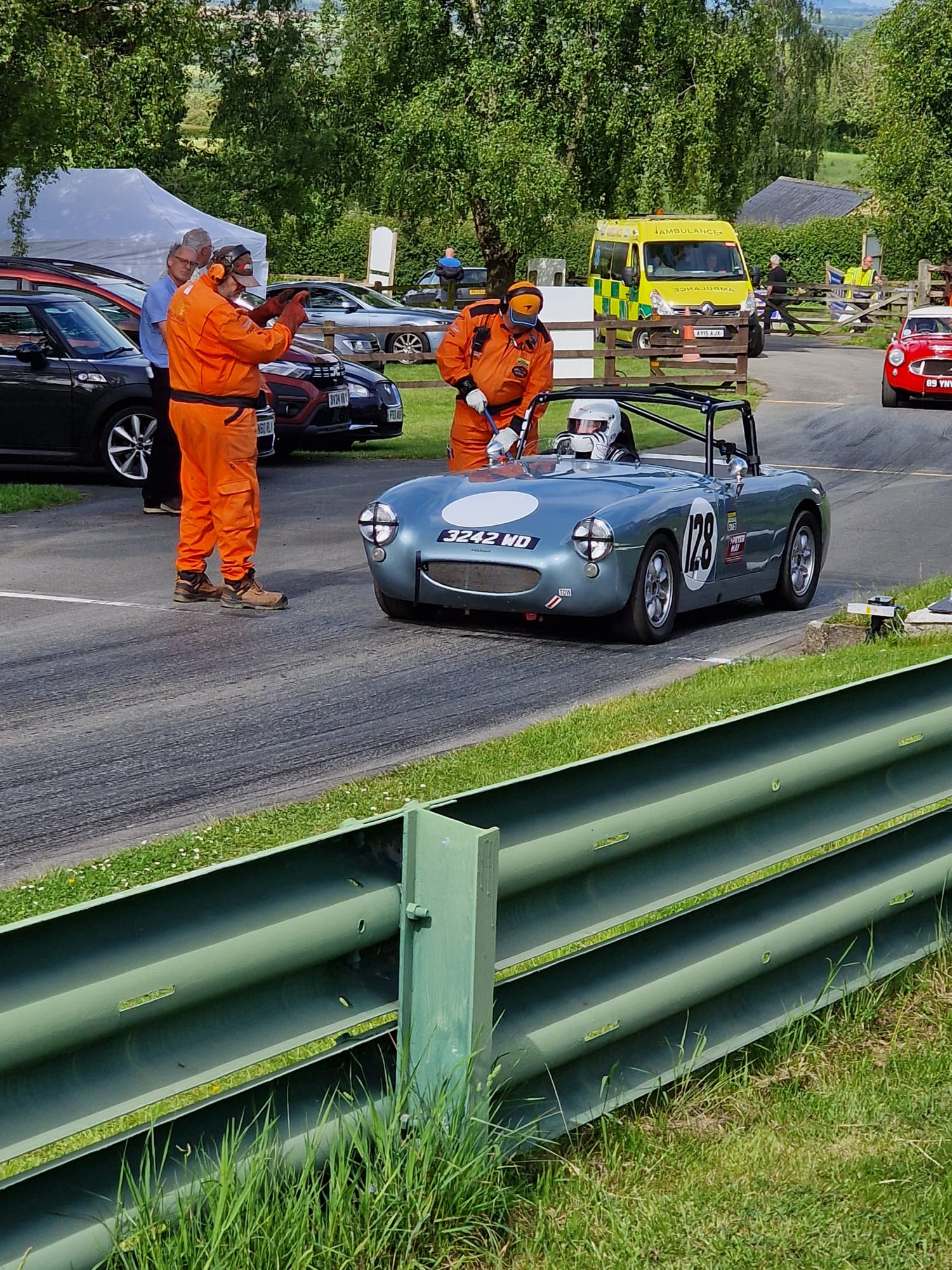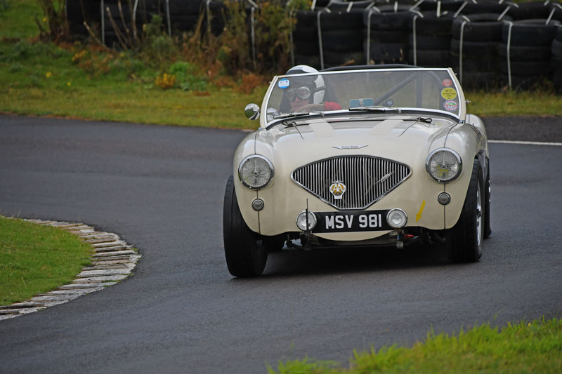 In the Big Healey class it was Pete Walton out front with a best time of 108.00 - just 800ths of a sec slower than the class record with Richard Mason just behind him in 108.73, followed by Michael Berry in 109.56, Ian Thomas in 111.88, Murray Shand in 112.90, Will Richards (pictured right)switched from his 3000 into his father's 100M to record a best time of 114.01 and Trish C-P in 121.43.