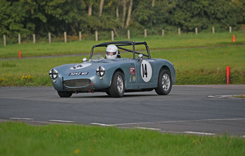After thirteen rounds, the points position in the Sprite class looked as if Brett Dillon was likely to win it but all could change on the last round depending on how the drivers performed on the day. In the Big/Jensen Healey class, the top two positions were fairly clear with the two 100 drivers - Michael Berry (pictured right) and John Ducker in 1st and 2nd places respectively, but third place depended on todays result.