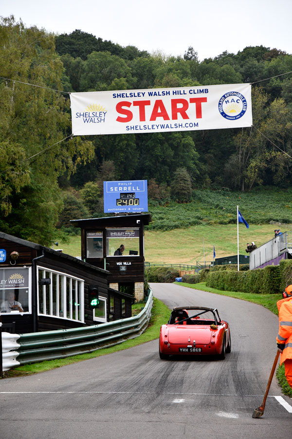 The Teme Valley in the Malvern hills in Worcestershire has been the idyllic setting and home for the historic Shelsley Walsh hill climb for the last 120 years. This incredibly steep ribbon of tarmac is 1000 yards of a twisty and narrow track, walled by banks, railway sleepers or Armco barriers. It requires a car with serious horsepower to be quick and in the rain is not a place for the faint hearted. It is a challenge that appeals to the Healey hill climbers and is invariably one of our best attended events of the year.